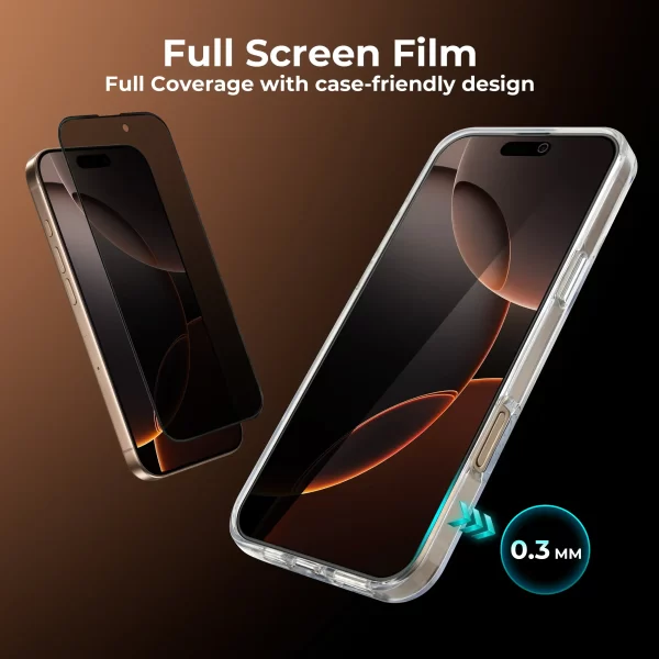 Maxwell 3D Vista Privacy Anti-Peep HD Screen Protector Compatible with iPhone 16 Pro