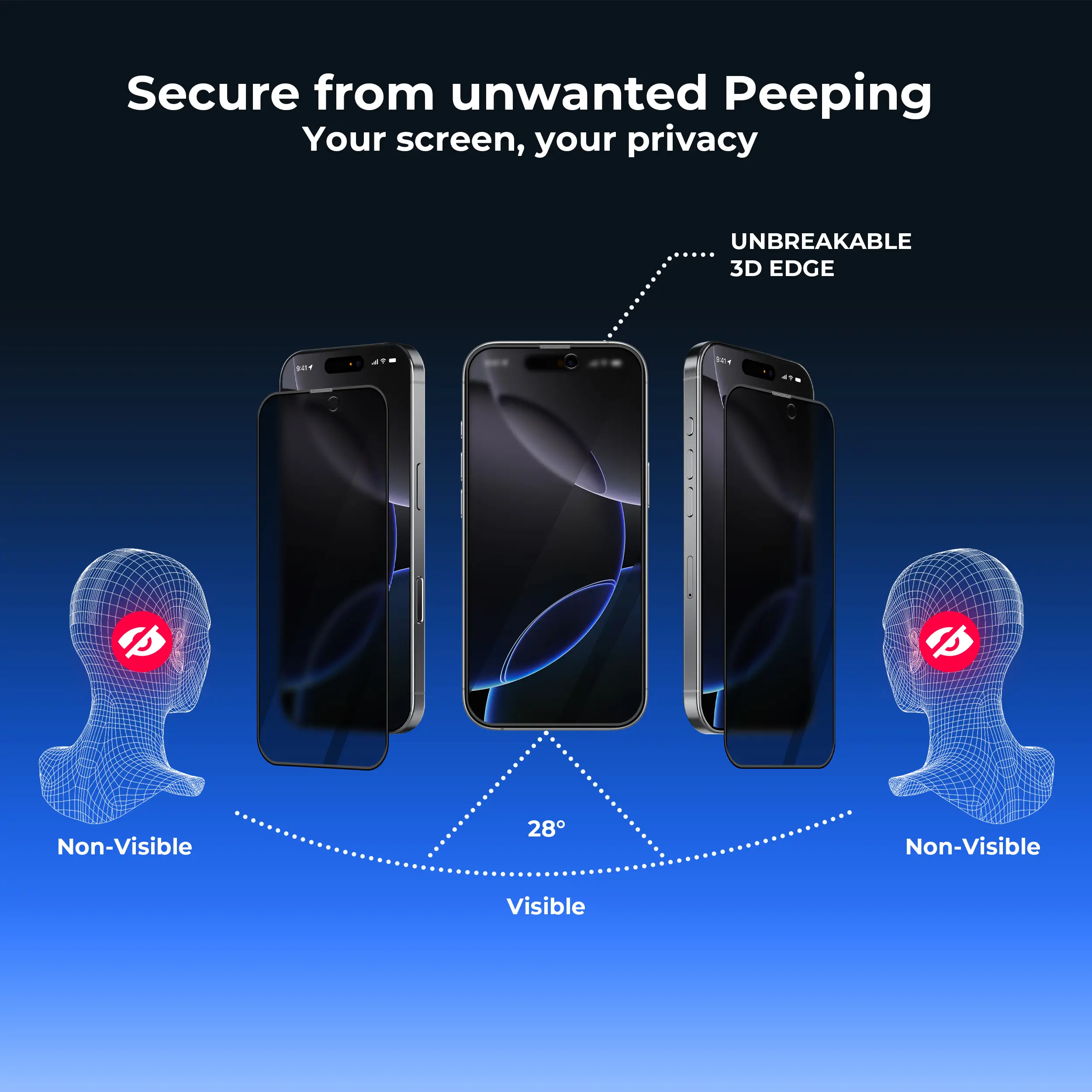 Maxwell 3D Matte Privacy Anti-Peep HD Screen Protector Compatible with iPhone 16 Pro Privacy Protection Anti-Static, Oleophobic Coating, Anti-Dust, Easy to Install, Non Bubble Installation