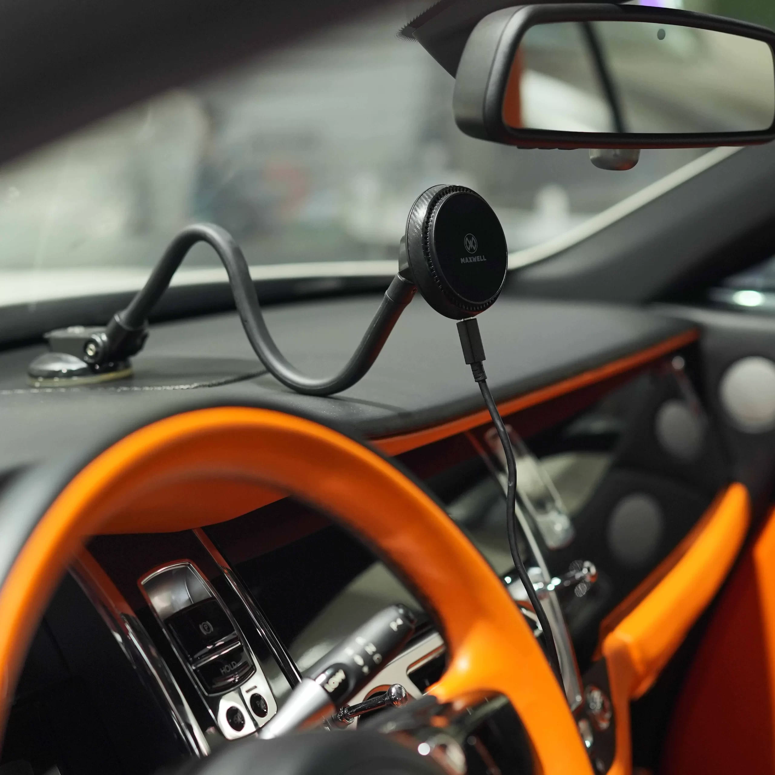 The Maxwell Car Holder & Wireless Charger offers MagSafe compatibility, fast wireless charging, and a built-in cooling fan. With a super magnetic grip and 360° rotation, it’s a universal car mount for both iPhone and Android devices.