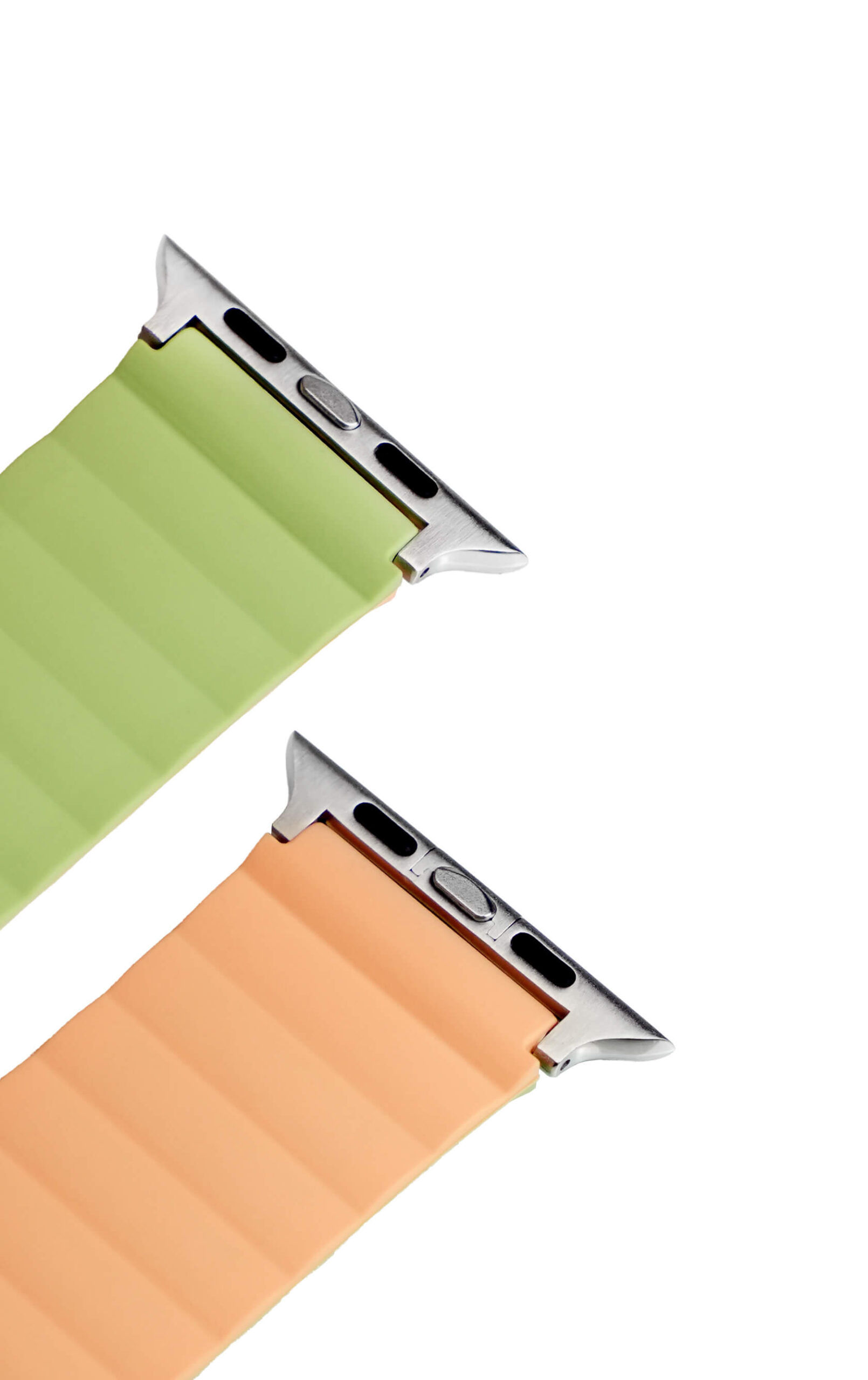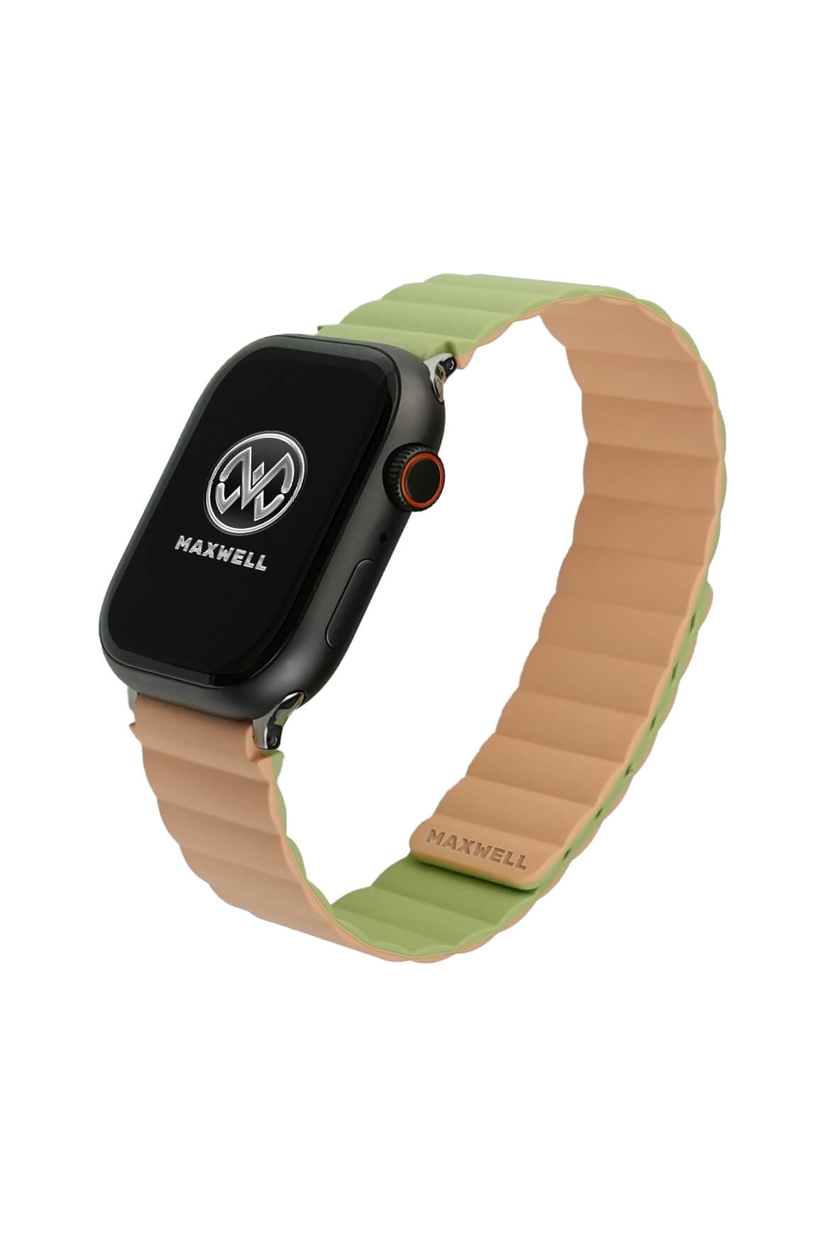 Upgrade your style with the Maxwell Core Series Reversible Smart Watch Band for Apple Watch 42mm to 44mm. Features a soft silicone build, secure magnetic closure, and dual-color design in Peach Green for all-day comfort and versatility.