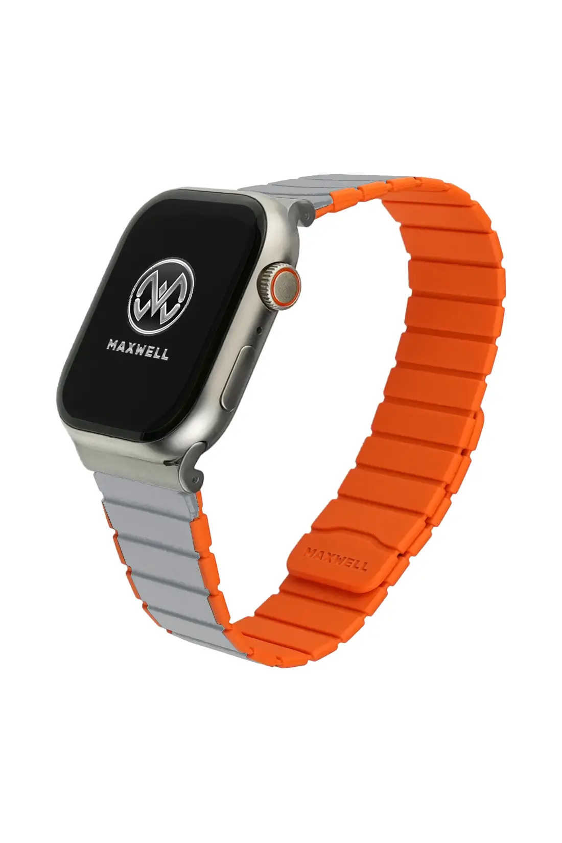 Maxwell Titan Series Smart Watch Magnetic Band Compatible with Apple Watch 42mm to 44mm Magnetic Watch Strap Silicone Band for Women and Men Unisex Strap Band (Gray/Orange)