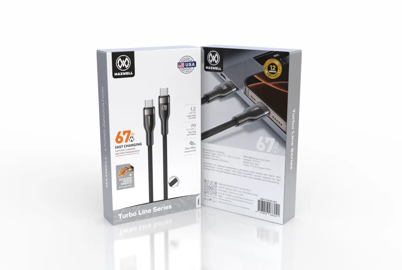 Maxwell Turbo Line Series Cable USB-C to USB-C 67W Fast Charging (1.2Meter)