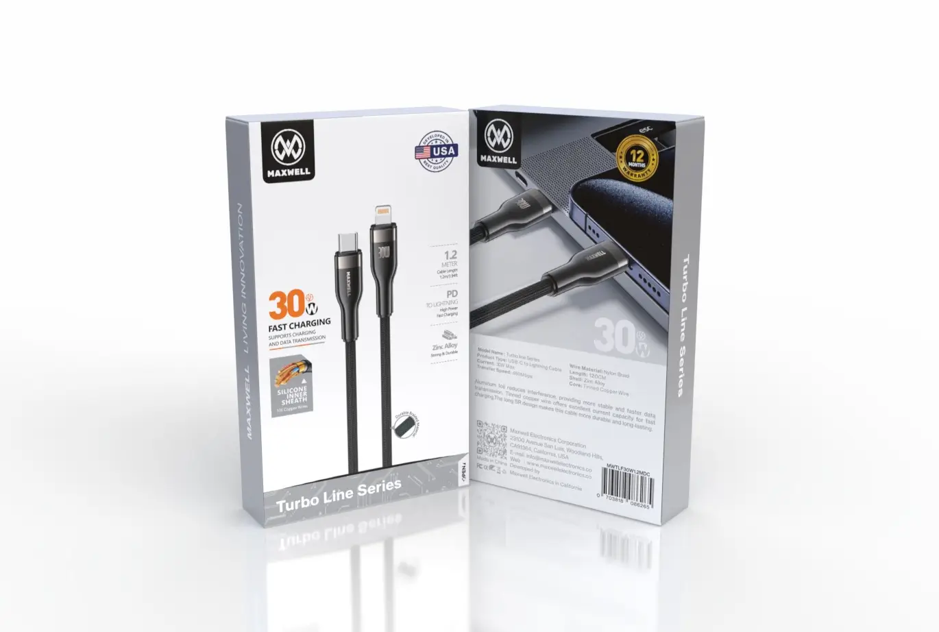 Maxwell Turbo Line Series USB-C Compatible with Maxwell Lightning (1.2 Meter)